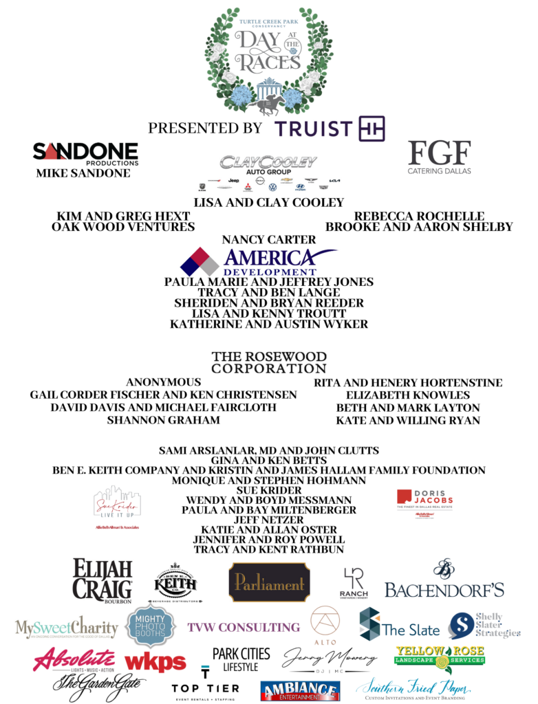 Celebrate the spirit of the Kentucky Derby at Turtle Creek Conservancy’s signature spring fundraiser, Day at the Races. This annual tradition brings together friends and supporters for an afternoon of elegance, excitement, and philanthropy in support of Turtle Creek Park and Arlington Hall.